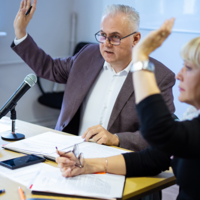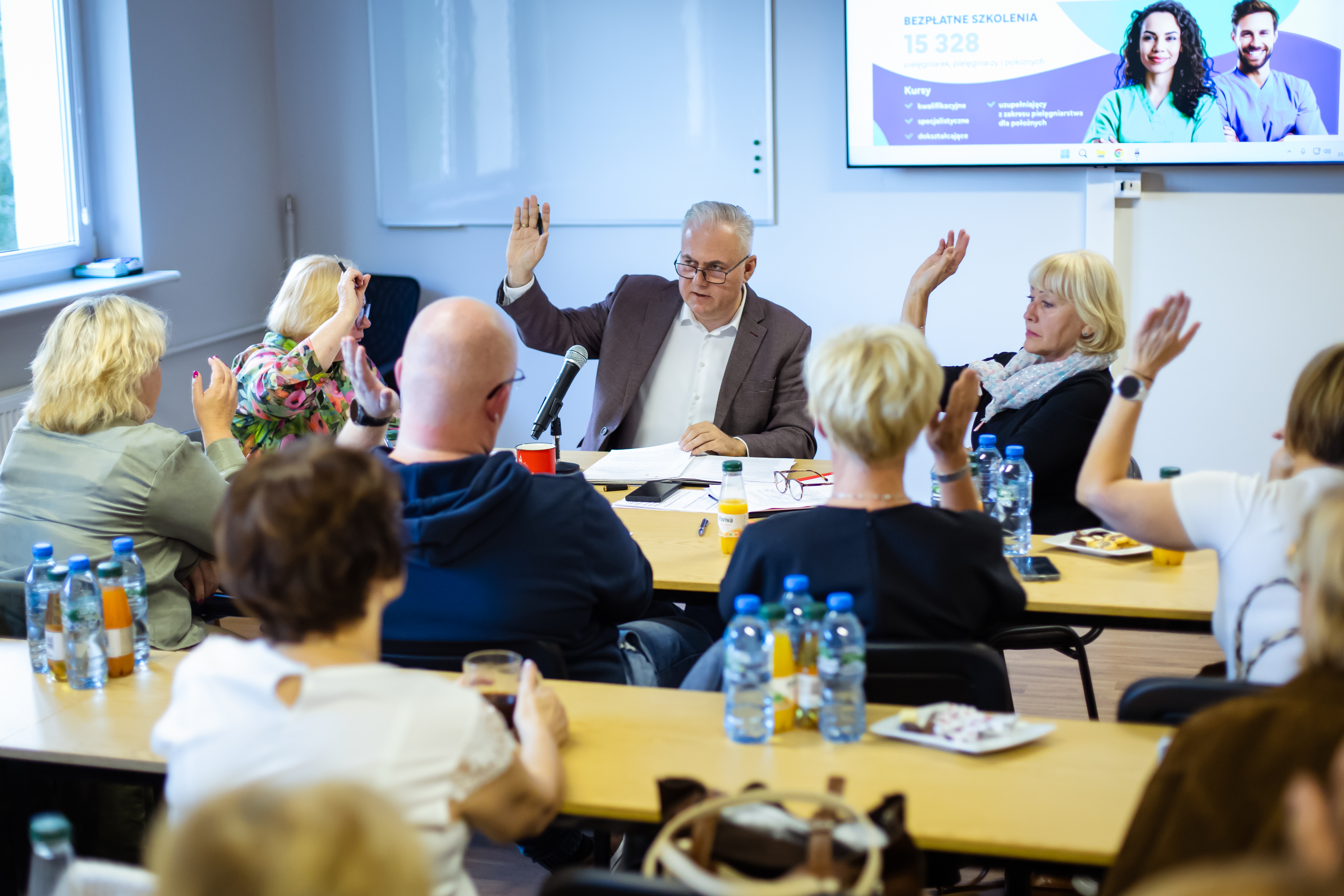 Dużą część spotkania poświęcono tematyce kształcenia podyplomowego, realizowanego w ramach projektu NIPiP pt. „Wsparcie kształcenia pielęgniarek, pielęgniarzy i położnych w Polsce” z programu Fundusze Europejskie dla Rozwoju Społecznego 2021-2027 (FERS). Przewodniczący Sebastian Irzykowski przedstawił informację o bieżących kursach specjalistycznych. Rada wyraziła zgodę na przystąpienie do drugiego zapytania ofertowego w ramach tego samego projektu, co pozwoli na organizację kolejnych szkoleń, w tym kursów z zakresu leczenia ran, terapii bólu przewlekłego oraz kursu dokształcającego z ordynowania leków. Ponadto, podjęto uchwałę o przystąpieniu do postępowania mającego na celu wybór organizatorów szkoleń specjalizacyjnych w dziedzinie pielęgniarstwa rodzinnego na terenie województwa pomorskiego, które rozpoczną się jeszcze w 2025 roku. O szczegółach będziemy informować na bieżąco.